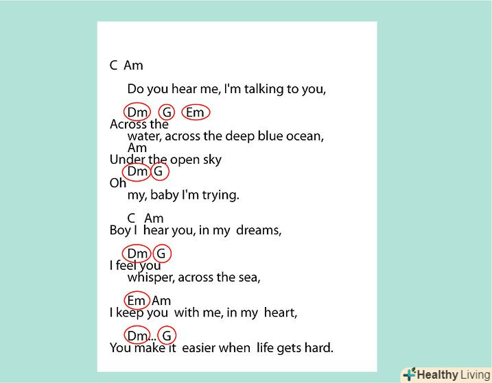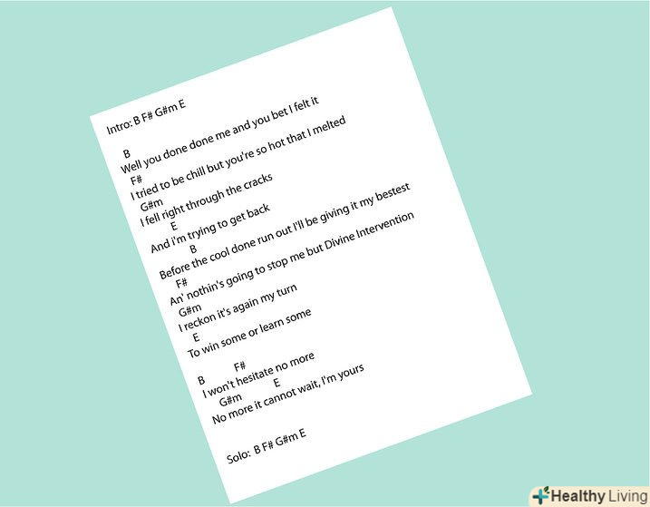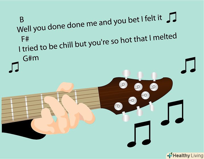 Використовуйте цей метод з реальною піснею.цей метод корисний, тому що він тренує вас присвоювати ноту кожному слову, і це в кінцевому підсумку призводить до словесної гітарної синхронізації.