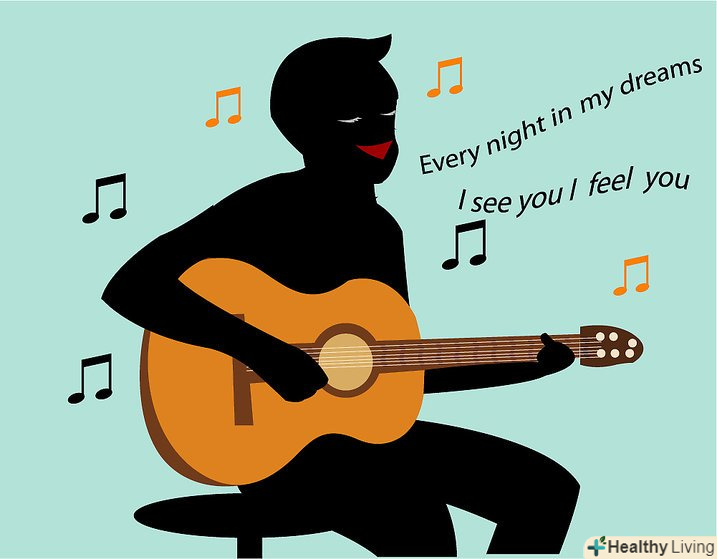 Навчіться грати на гітарі.ви можете почати з основних акордів або знайти пісню і подивитися табулатури. Знайдіть те, що ви думаєте, що ви можете грати на гітарі і співати в той же час