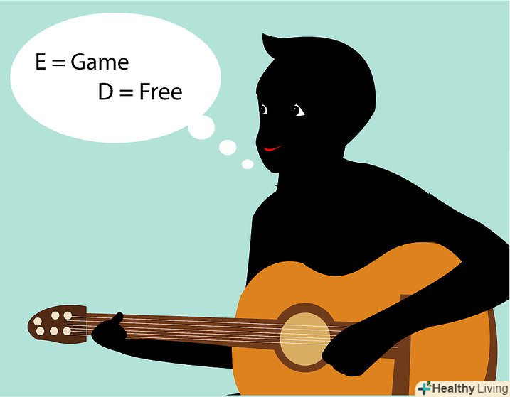 Наприклад, якщо слово-зразок для акорду мі мажор-гра, то під час гри акорду мі мажор потрібно вимовити слово гра. якщо слово-зразок для акорду ре мажор-пора, то під час гри акорду ре мажор потрібно вимовити слово пора. Спробуйте зробити ваші слова римованими, тому що це буде навчати вас при відтворенні відрізняти слово від слова.
