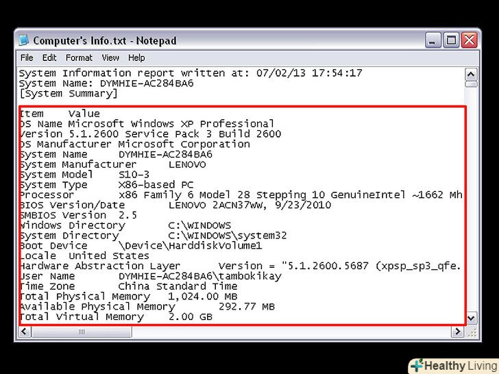 Введіть вибране ім'я файлу в рядок імені файлу внизу і натисніть Enter.- Залежно від того, як швидко ваш комп'ютер працює і скільки йому років (обсяг системної інформації, помилок і журналів, які накопичилися), ви незабаром будете мати Notepad файл (. TXT), який містить все, що потрібно знати про ПК.