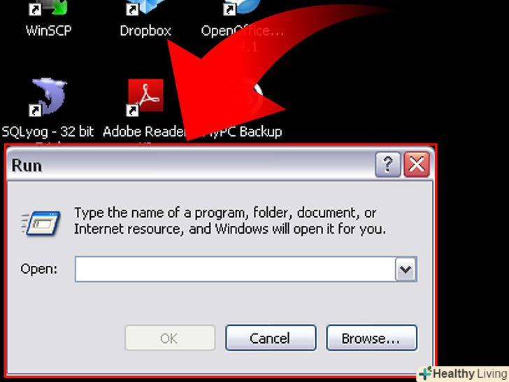 Натисніть кнопку Start знову, і як тільки у вас з'явиться опція Run, клацніть по ній. ви побачите невелике вікно, що з'являється з адресним рядком і декількома кнопками.