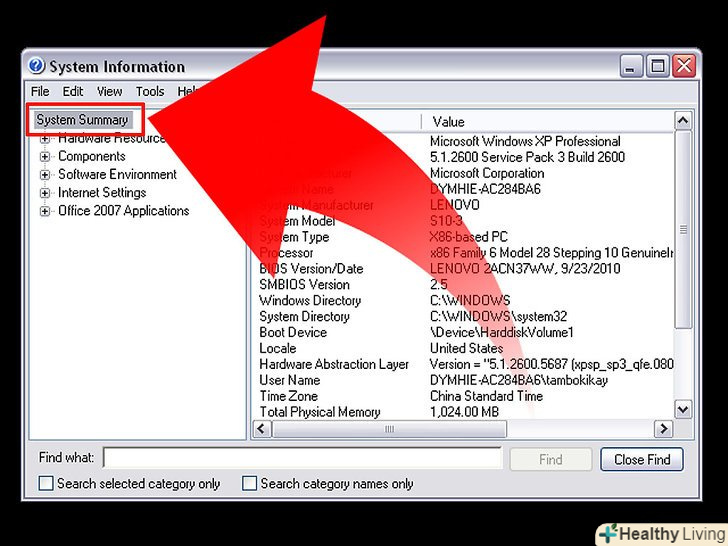 - На головній сторінці буде вказана інформація System Summary основ вашої системи, як правило, починаючи з операційної системи. Це місце, де ви отримаєте більшу частину основної інформації, яку Ви шукаєте.