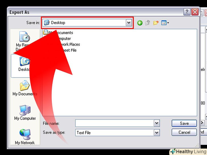 Знайдіть гарне місце, щоб помістити файл, який ви експортуєте.робочий стіл є хорошим місцем, тому що його легко знайти (втім, зазвичай розміщення великих файлів на робочому столі може уповільнити роботу вашого комп'ютера).