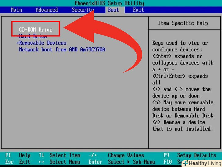 Встановіть BIOS на завантаження з CD / DVD диска в першу чергу.