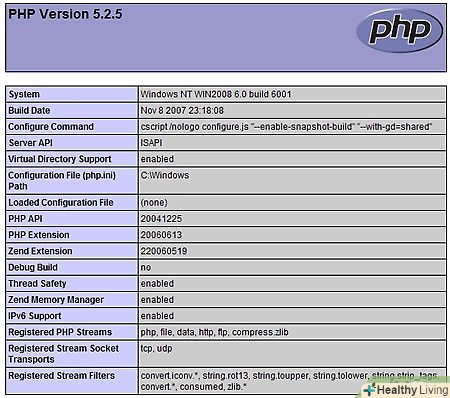 - Тепер ви повинні побачити PHP-сторінку з інформацією за адресоюhttp://localhost/phpinfo.php.