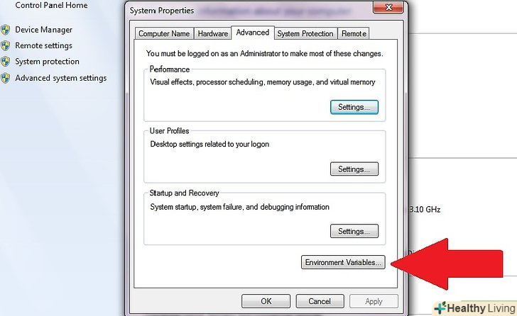 - Щелкните правой кнопкой мыши на My Computer и выберите Properties gt; Advanced Tab gt; нажмите "Environment Variables".