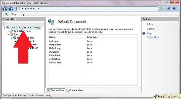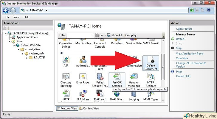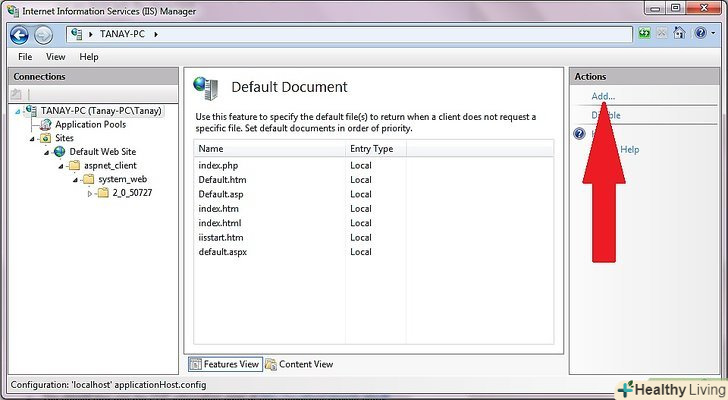 - У лівій панелі натисніть на ім'я хоста вашого сервера, а потім двічі натисніть на значок Default Document.