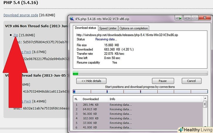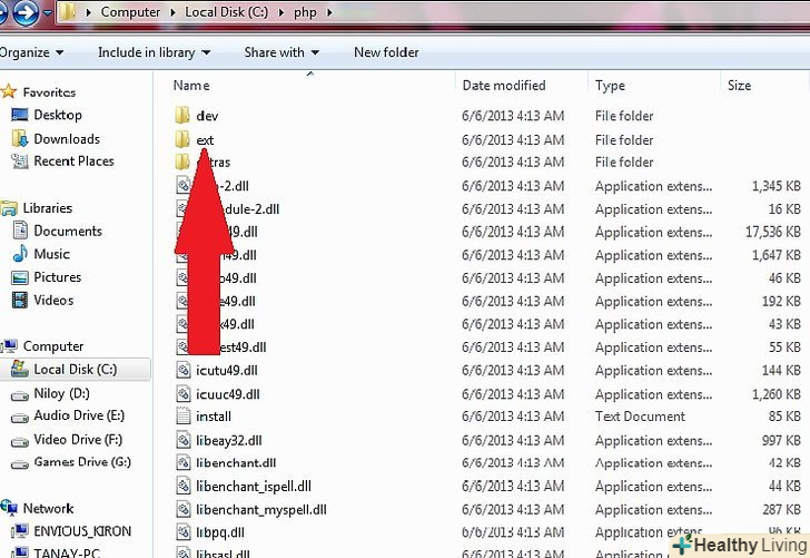 Після завантаження вийміть перший завантажений файл і помістіть файли в "C:\php". Витягніть модулі PECL в "C:\php\ext".