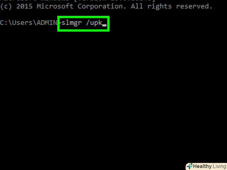 Введіть в командний рядок "slmgr / upk «і натисніть»Enter".ця команда дозволить видалити застарілий ключ продукту.