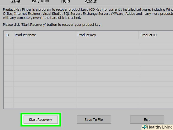 Натисніть на " Start Recovery "(почати пошук) в головному вікні Product Key Finder. програма автоматично знайде ключ продукту Windows 8 і відобразить його на екрані.