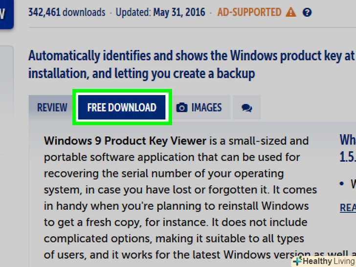 Відкрийте головну сторінку Windows 8 Product Key Viewer на сайті Softpedia, перейшовши за цією адресою: http://www.softpedia.com/get/System/System-Info/Windows-8-Product-Key-Viewer.shtml. Це програма сумісна з усіма версіями Windows, включаючи Windows 8.