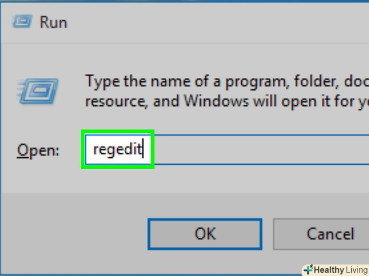 Введіть "regedit «у діалоговому вікні» Виконати «та натисніть»OK". має відкритися вікно Редактора реєстру Windows.
