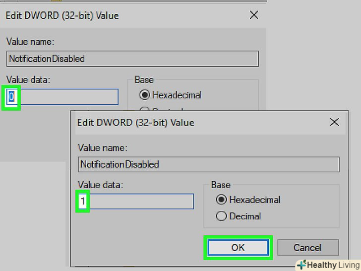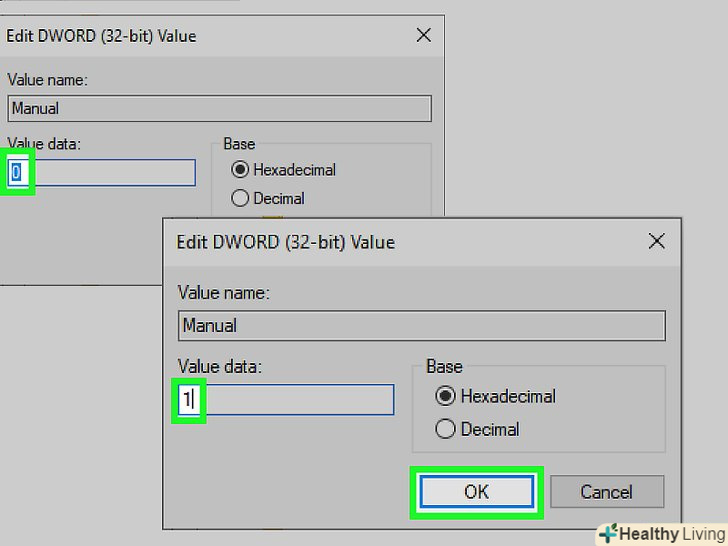 Змініть значення. у текстовому полі «Значення» замініть "0 «на» 1«, а потім натисніть»ОК".- Можливо, Вам буде запропоновано підтвердити свої дії. У цьому випадку натисніть "Так»або "ОК".