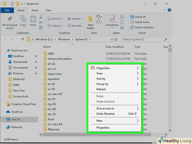 Створіть порожню копію файлу " WgaLogon.dll». для цього:- Клацніть правою кнопкою миші по порожньому простору в папці "System32";