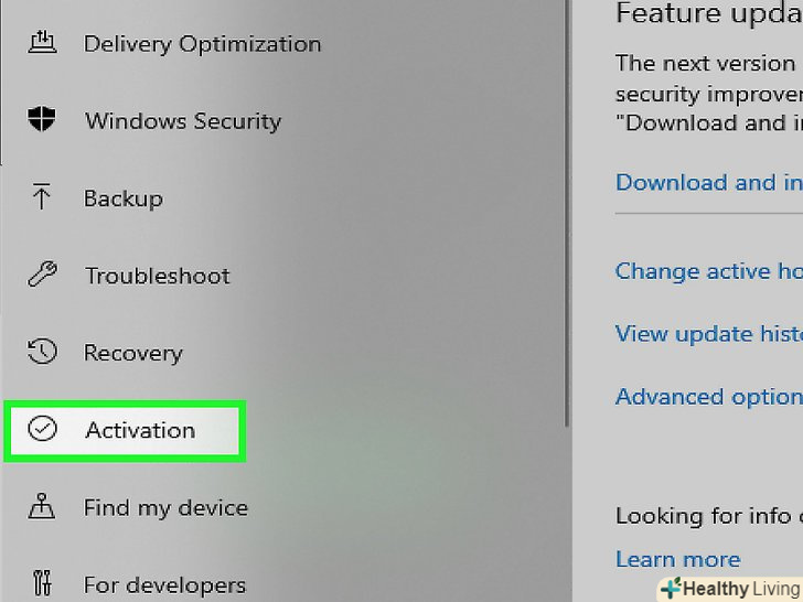 Клацніть по вкладціАктивація.ви знайдете її в лівій частині вікна.