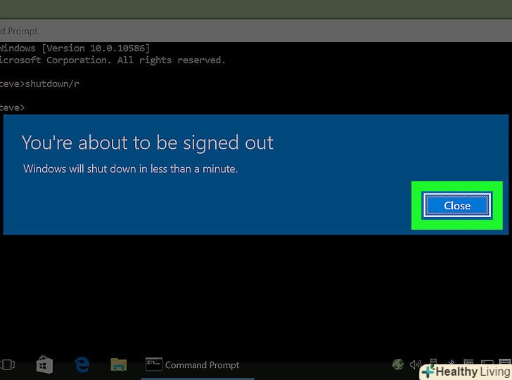 Закрийте сповіщення.на екрані з'явиться повідомлення про те, що комп'ютер буде перезавантажений менш ніж за хвилину. Натисніть Закрити, щоб закрити його.