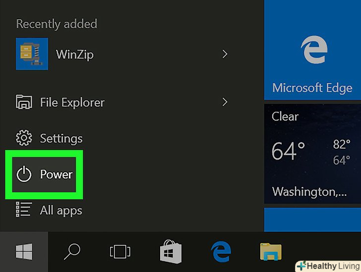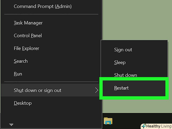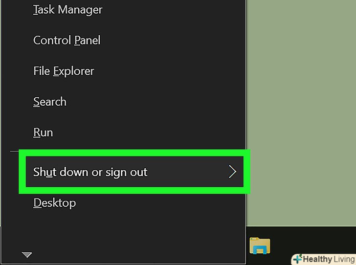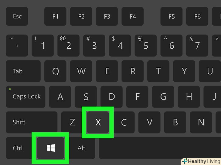 Відкрийте меню керування живленням. натисніть ⊞ win+X на клавіатурі.[2]- Або просто клацніть правою кнопкою миші на кнопці «Пуск». Якщо у вас сенсорний екран, утримуйте меню натиснутим кілька секунд, а потім відпустіть натискання.