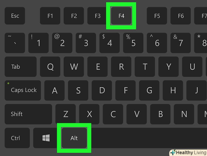 Відкрийте діалогове вікно "завершення роботи Windows". натисніть Alt+F4.- Використання цього поєднання клавіш у відкритій програмі призведе до закриття вікна програми.