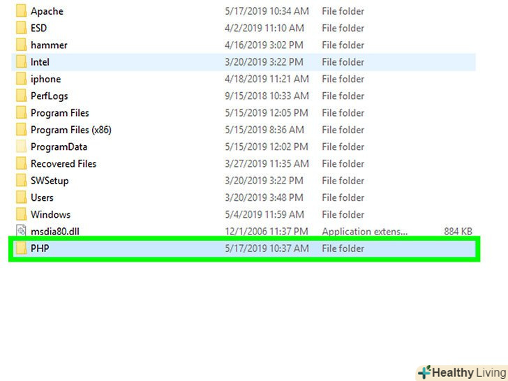Відкрийте папку "PHP".ця папка знаходиться на диску "C: «(як і папка»Apache"). Двічі клацніть по папці "РНР", щоб відкрити її.