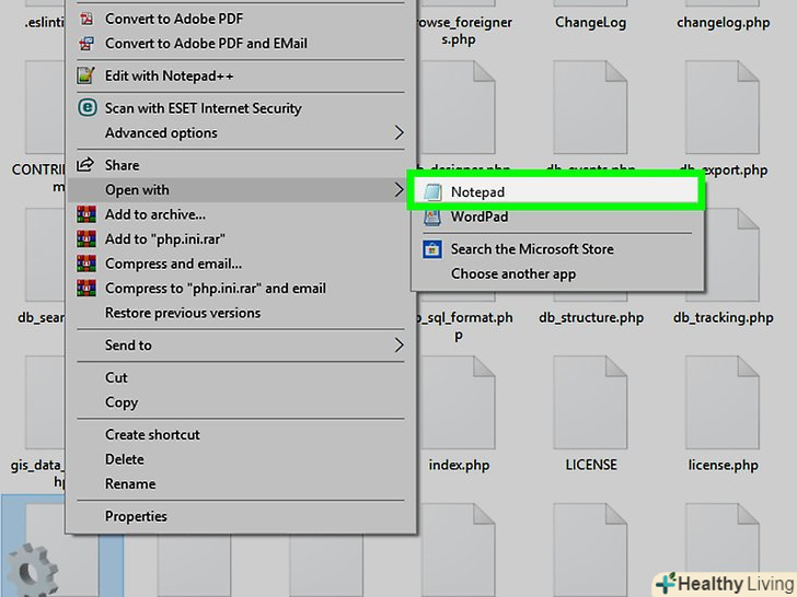 Двічі клацніть по файлу " php.ini». він відкриється в текстовому редакторі, який використовується за замовчуванням( наприклад, в блокноті); в деяких випадках вам доведеться вибрати Блокнот в списку, а потім натиснути «ОК».
