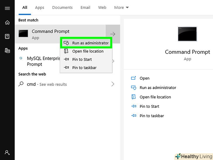 Запустіть сервер Apache. Відкрийте командний рядок від імені адміністратора; для цього клацніть правою кнопкою миші по «Пуск» «, виберіть "командний рядок (адміністратор)" і натисніть "Так", коли з'явиться запит. Тепер виконайте наступні дії:
