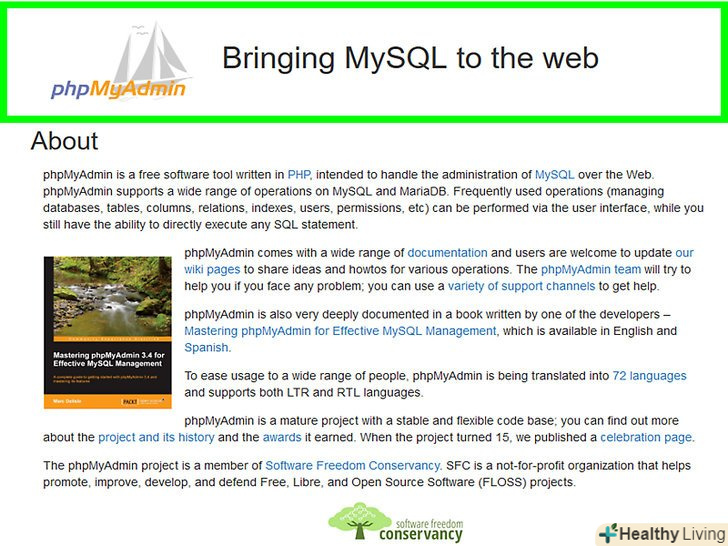Відкрийте сторінку, на якій можна завантажити phpMyAdmin. перейдіть на сторінку https://www.phpmyadmin.net / в браузері.