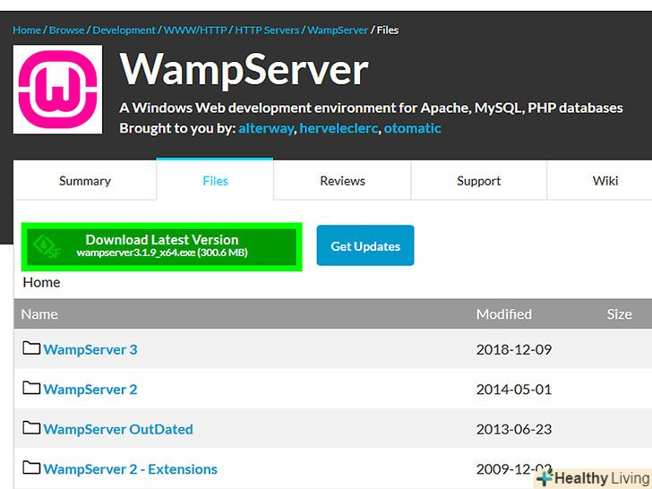 Клацніть поDownload (завантажити).ця зелена кнопка знаходиться у верхній частині сторінки. Почнеться процес скачування WAMP.- Цей процес займе кілька хвилин.