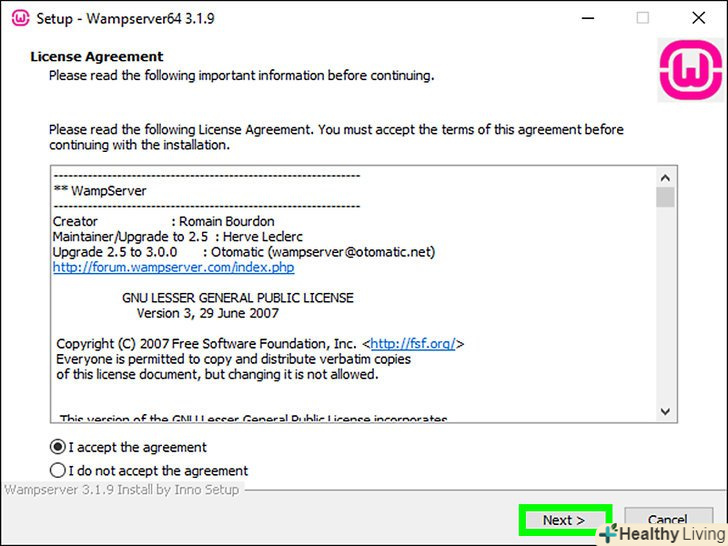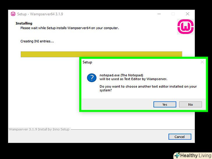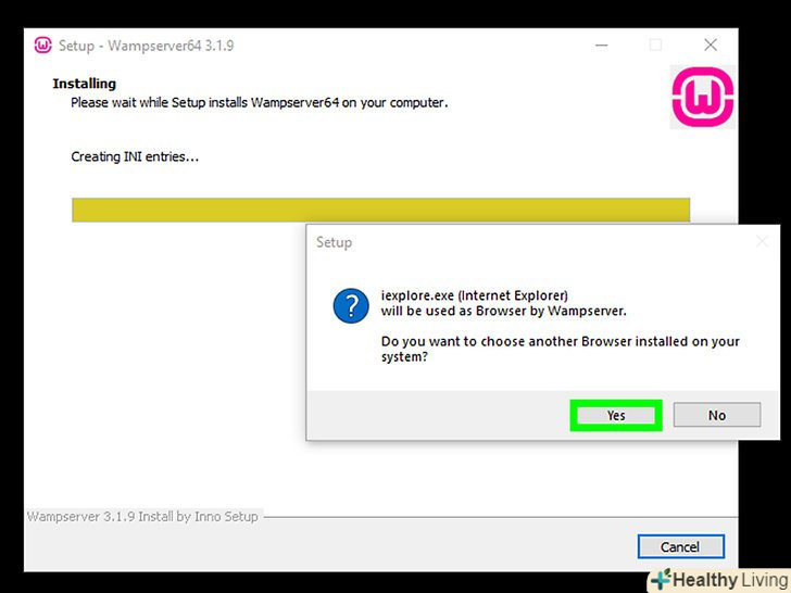 Встановіть WAMP. двічі клацніть по завантаженому інсталяційному файлу WAMP, а потім виконайте наступні дії:- Натисніть "Так", Коли буде запропоновано;