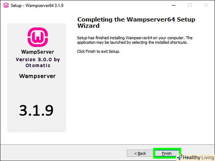Завершіть установку WAMP.натисніть «Next» (Далі), а потім натисніть «Finish» (Готово) в останньому вікні майстра установки.