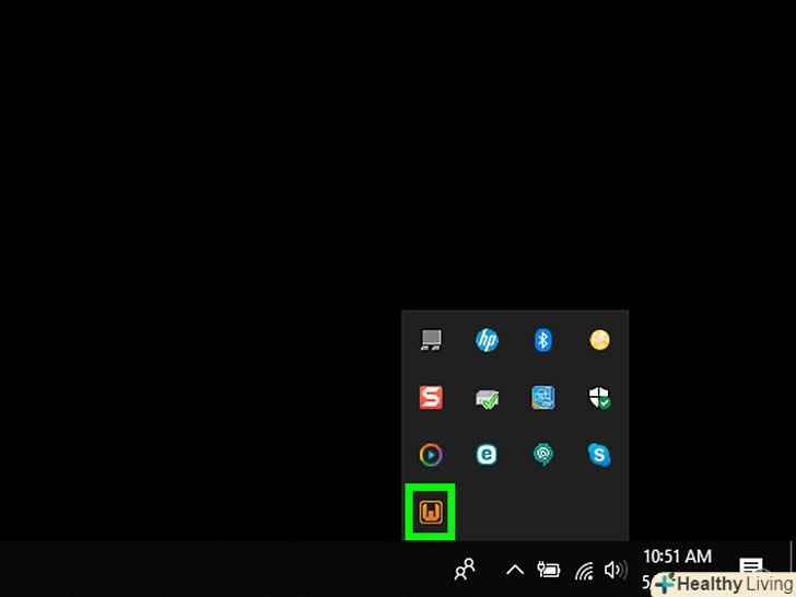 Клацніть по значку WAMP на панелі завдань. у правій частині панелі інструментів Windows ви побачите помаранчевий або зелений значок WAMP. Якщо натиснути на цей значок, відкриється спливаюче меню.- Можливо, спочатку потрібно клацнути по значку у вигляді спрямованої вгору стрілки, щоб відобразити значок WAMP.