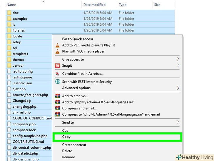 Скопіюйте папку "phpMyAdmin". Клацніть на папці з phpMyAdmin у вікні розпакованого архіву, а потім натисніть Ctrl+C.