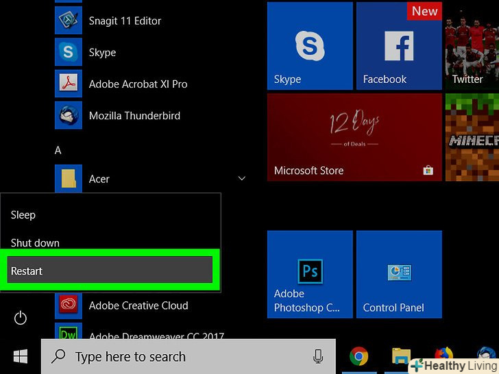 - Перезавантажте комп'ютер. Натисніть "Пуск"gt « "живлення"
