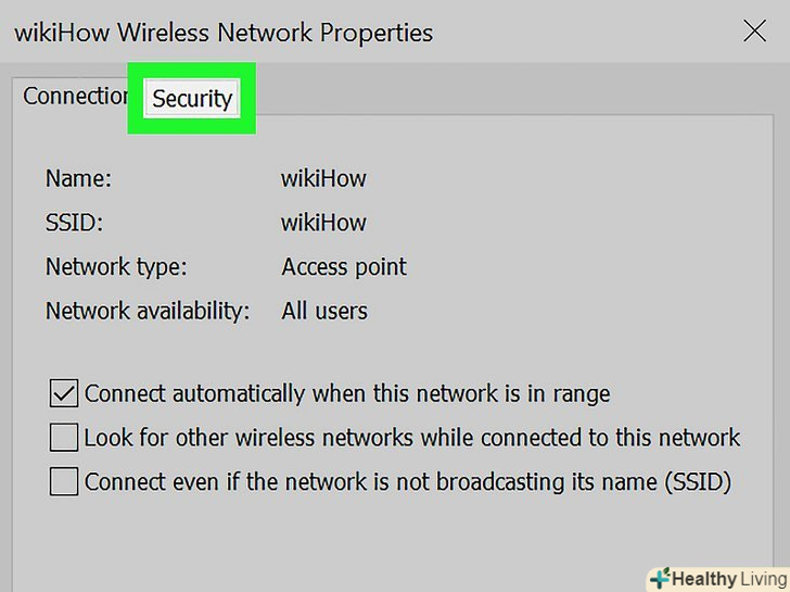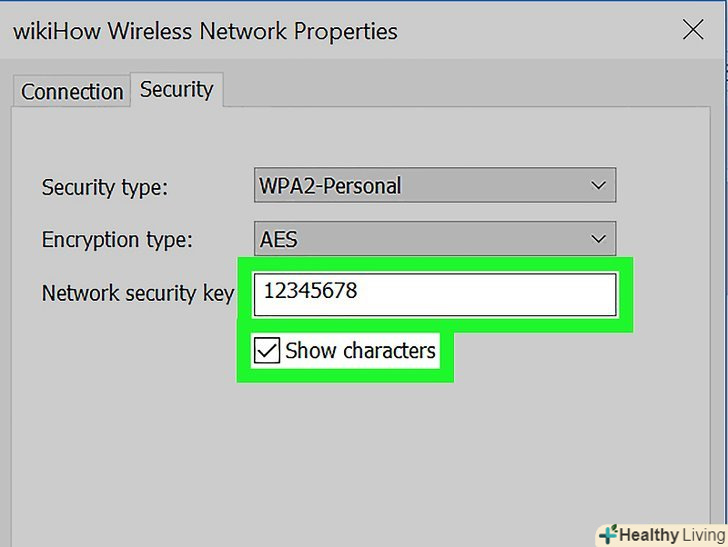 Перейдіть на вкладкуБезпека. Пароль буде відображений в полі "Ключ безпеки мережі", але в прихованому вигляді.