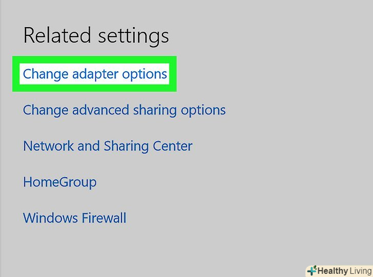 Натисніть наНалаштування параметрів адаптера.на екрані з'явиться вікно "мережеві підключення".- В іншому випадку натисніть⊞ Win+S, щоб відобразити пошук. Введіть Перегляд мережевих підключень, після чого натисніть на Перегляд мережевих підключень.