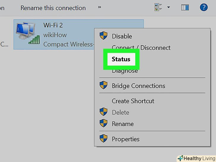 Натисніть правою кнопкою миші на підключену мережу Wi-Fi.