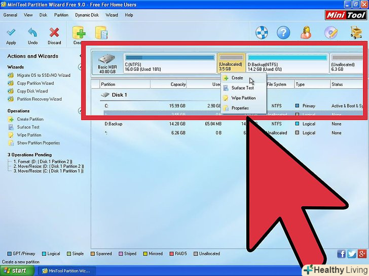Дії з нерозподіленим простором.зменшивши розмір розділу і отримавши нерозподілений простір, ви можете перетворити його в Новий Розділ або додати до існуючого розділу.[1]- Прочитайте статтюяк створити новий розділ.