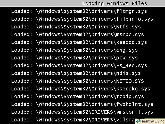 Дочекайтеся, коли завантажаться необхідні файли.на наступному екрані відобразиться список завантажуваних файлів. Якщо всі файли завантажилися нормально, приступайте до усунення неполадок. Якщо ж процес завантаження файлів завис, запишіть ім'я останнього успішно завантаженого файлу, а потім на основі цієї інформації в Інтернеті пошукайте поради щодо усунення неполадок.