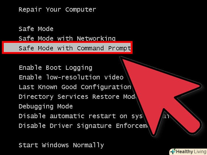 Перезавантажте комп'ютер у безпечному режимі.це можна зробити двома способами. Коли комп'ютер піде на перезавантаження, кілька разів натисніть клавішу F8, щоб відкрити меню запуску. Також можна налаштувати завантаження Windows в безпечному режимі. Виберіть перший спосіб, якщо Windows взагалі не завантажується, а в інших випадках скористайтеся другим способом.- Перший спосіб має на увазі неодноразове натискання на клавішу " F8 " при перезавантаженні комп'ютера. Натисніть на цю клавішу до появи логотипу Windows; якщо ви не встигли, перезавантажте комп'ютер і повторити спробу.[1]