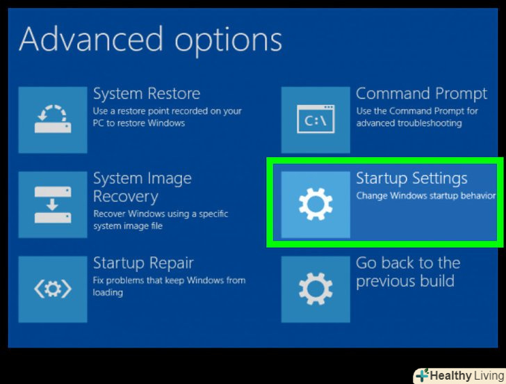 Натисніть наПараметри завантаження в правій частині екрана.після цього на екрані з'явиться список можливих параметрів перезавантаження.
