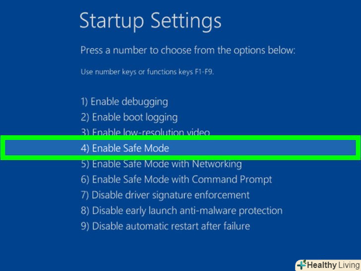 Натисніть4.так ви виберете "Безпечний режим" і перезавантажте комп'ютер в цьому режимі. Це може зайняти кілька хвилин.
