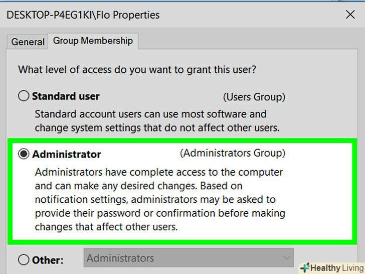 - Якщо ви хочете привласнити адміністраторські права іншого облікового запису на комп'ютері, перейдіть до третього методу.