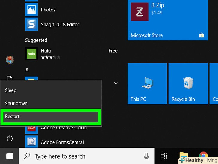 Перезавантажте комп'ютер в меню "Додаткові параметри". Для цього зайдіть в меню «Пуск», натисніть на «Завершення роботи»