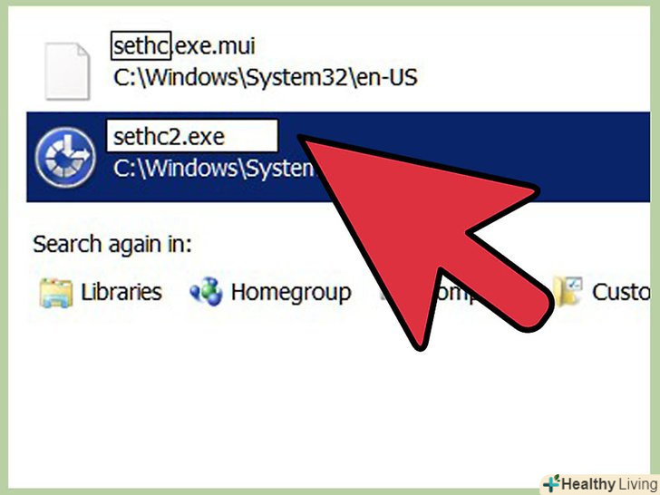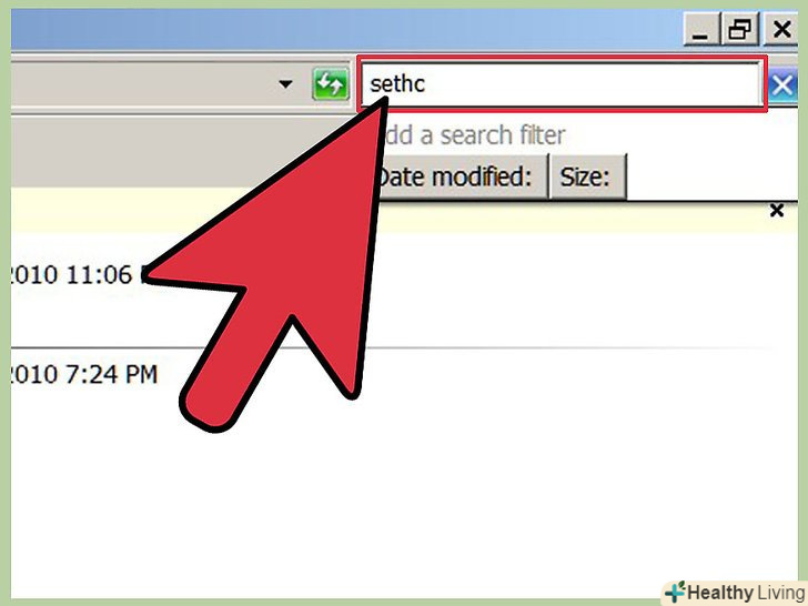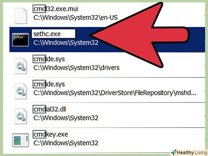 Натисніть на рядок пошуку, в правому верхньому куті вікна і введіть "sethc" (без лапок).