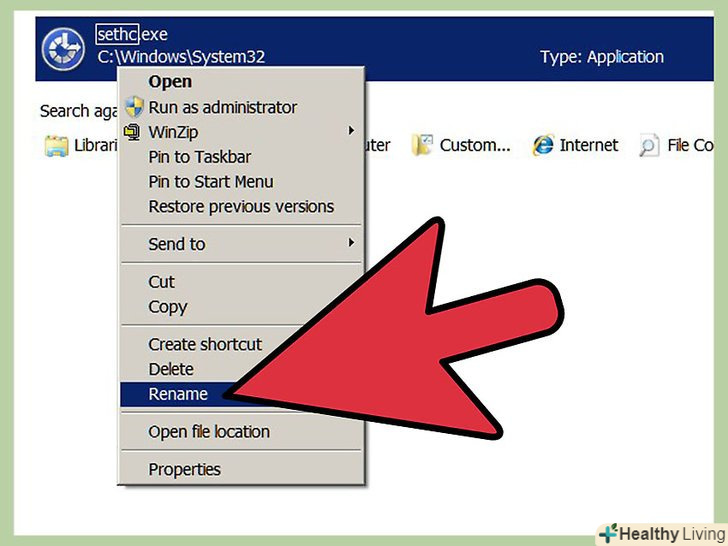 Назвіть файл " sethc "(без лапок) і натисніть «Enter».