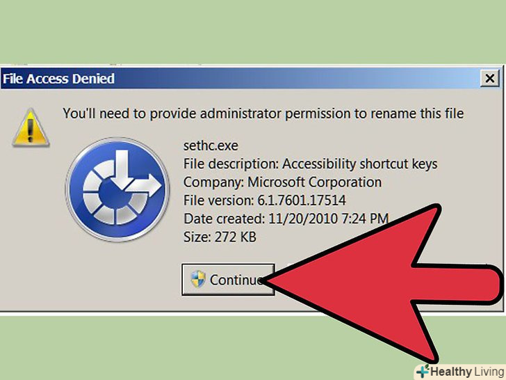 - Цей метод не буде працювати на 64-бітних версіях Windows 7, тому що заходи безпеки повинні мати дозволи програми «TrustedInstaller», яке дозволяє встановлювати програми перед зміною системних файлів.