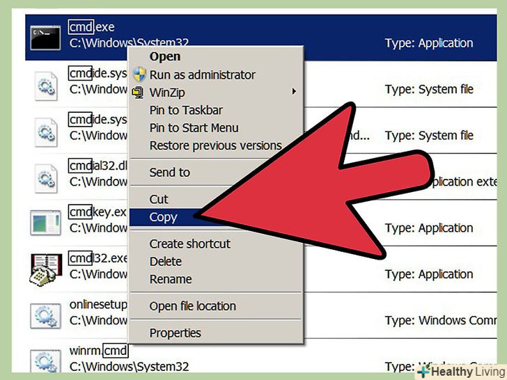 Клацніть правою кнопкою миші на файлі, який має логотип чорного вікна і натисніть "Копіювати".