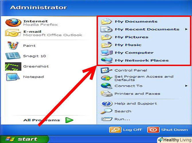 Зверніть увагу на праву панель меню "Пуск «(з папками» Мої документи«,» Мої малюнки" і т.п.).