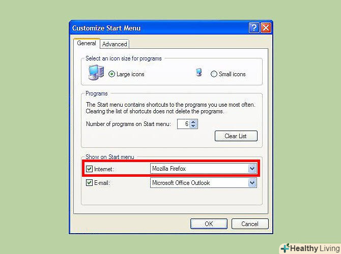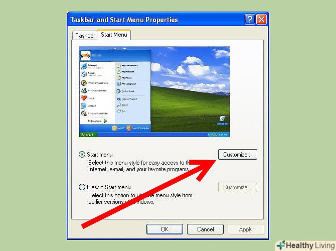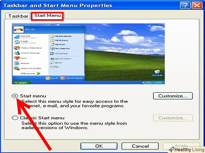 Позначте "меню Пуск".- Якщо відзначена опція» класичне меню Пуск", то далі можете не читати. Просто запустіть браузер і у вікні із запитом виберіть його браузером за замовчуванням.