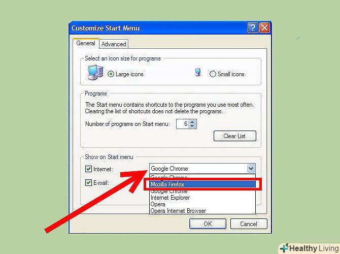 - Якщо відзначена опція» класичне меню Пуск", то далі можете не читати. Просто запустіть браузер і у вікні із запитом виберіть його браузером за замовчуванням.