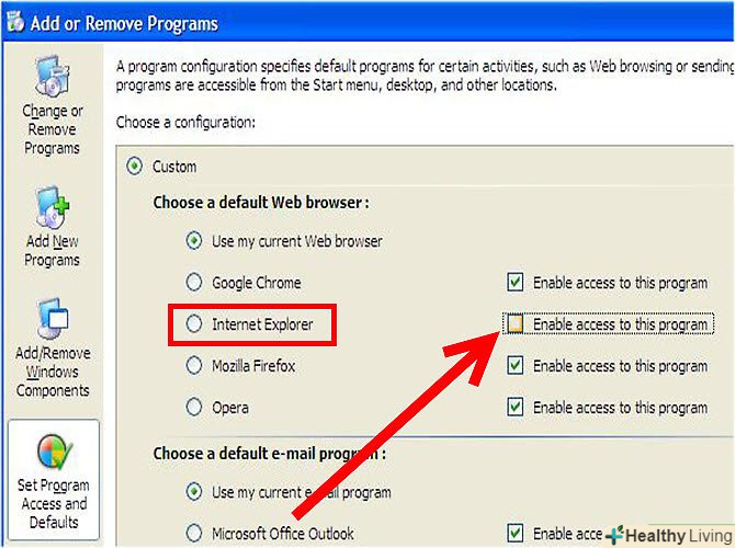 Вимкніть Internet Explorer, прибравши прапорець у»зробити доступною цю". переконайтеся, що ця ж опція відзначена в іншого браузера (яким ви хочете користуватися).